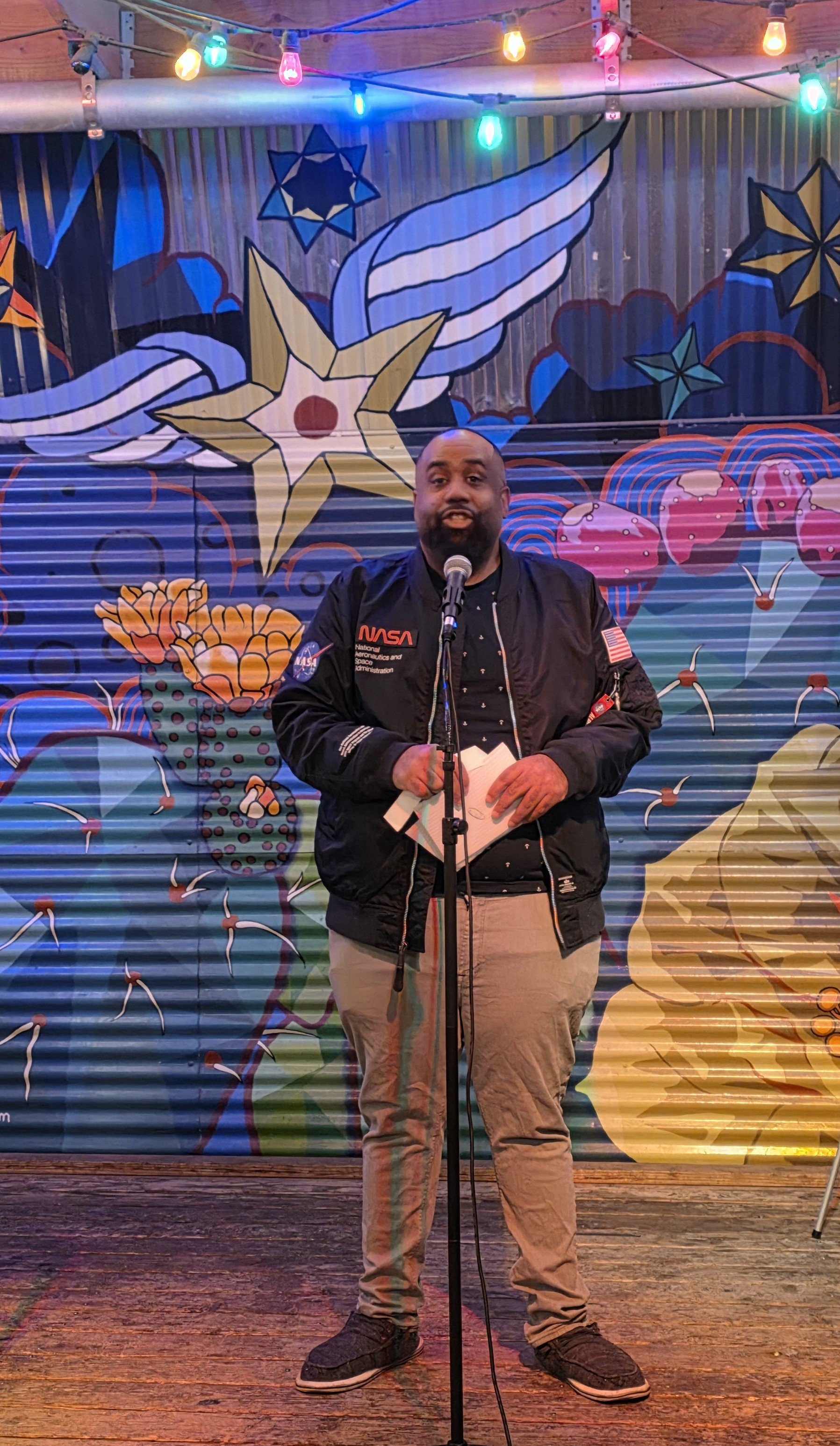 DCSS Audience with Marvin Cotton, Emcee on stage at the Canteen Brewhouse, January 2025